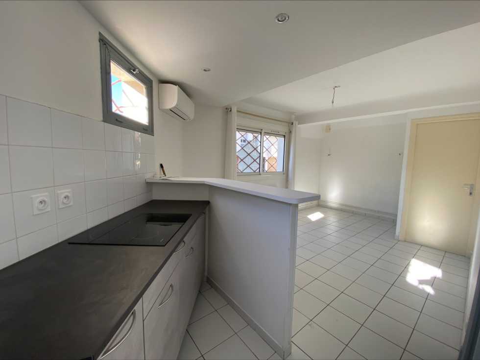 Proche du Palais des Congrès, rue des Mimosas. Un appartement en rez-de-chaussée de type T2 climatisé comprenant un séjour avec cuisine ouverte, une chambre, une salle d'eau avec wc, une pièce annexe non attenante pouvant servir de bureau et un cellier. DISPONIBLE DE SUITE
