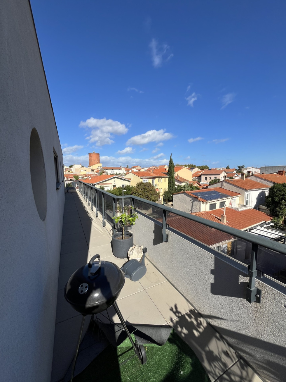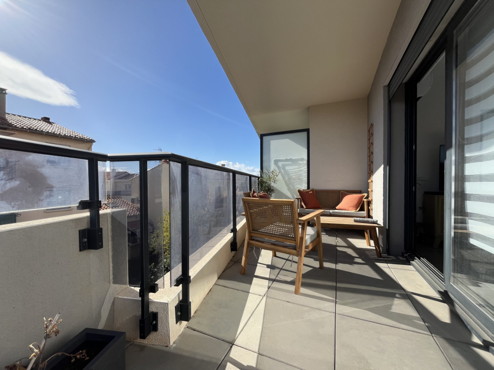 PERPIGNAN dans une résidence récente de bon standing et bien tenue, appartement de type 2 au 3ème et dernier étage de la résidence, comprenant une entrée avec placard, un grand séjour avec cuisine américaine, une suite parentale et un wc. Toutes les pièces disposent d'un accès sur une grande terrasse, belle vue dégagée, exposition sud, prestations confortables notamment volets roulants électriques, clim, grandes baies vitrées, une cave et une place de parking privative en sous sol de la résidence. Situé dans le quartier las cobas, commerces à pied et transports en communs.